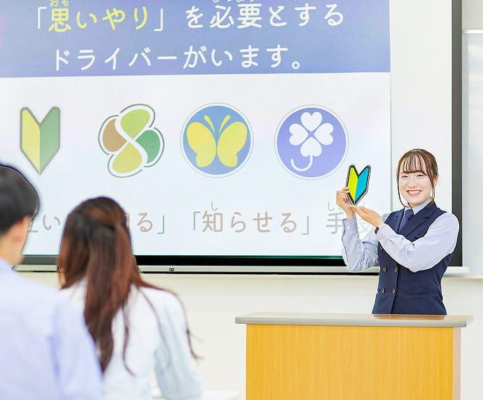 補助装置付きの教習車やオリジナル教材を使用して、